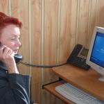 Caroline Keesic, Social Counsellor, for the school, with her new IP phone.