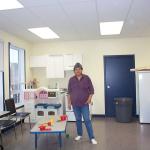 Adi Linden took the time to show Charlisa and Darlene how to connect the network cable to the wall jacks.